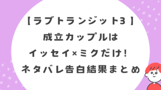 恋リア 【ラブトランジット3 最終回ネタバレ】成立カップルはイッセイ×ミクだけ!告白結果まとめ 【ラブトランジット3 最終回ネタバレ】成立カップルはイッセイ&ミクの1組だけ!ヒロとみゆうが別れた理由、そして全組の衝撃の結末やSNSの反応を紹介。あなたの予想は当たりましたか? 2025.11.01 恋リア