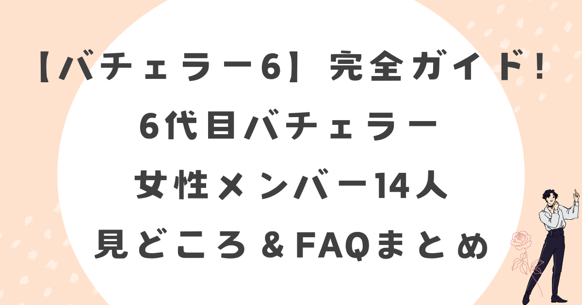 これからバチェラー6を見始める人が「いつから・どこで・誰が出るのか」をすぐに把握できる“入口記事”として使えるように、公式情報と大手メディアの内容を中心に整理しました。