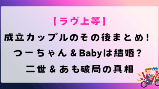 【ラヴ上等】成立カップル2組のその後!つーちゃん&Babyは結婚?二世&あもは破局?2025年12月24日公開の最新インタビューと動画での発言を元に、交際の真実をまとめました。